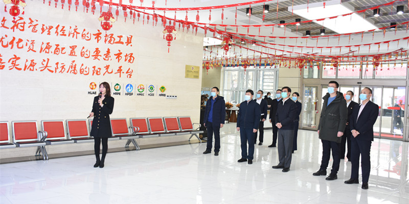 調(diào)研座談會前,張玉福一行在交易大廳聽取了交易集團(tuán)基本情況和業(yè)務(wù)板塊介紹,并參觀了集團(tuán)黨建工作和企業(yè)文化墻展示。