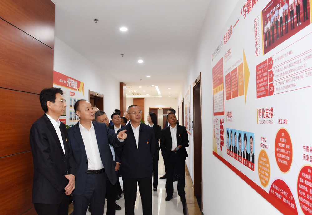 座談前,蔣濟(jì)眾一行在集團(tuán)一樓業(yè)務(wù)辦理大廳通過講解員講解,觀看集團(tuán)企業(yè)宣傳片,參觀企業(yè)黨建文化走廊,全面了解交易集團(tuán)發(fā)展情況。