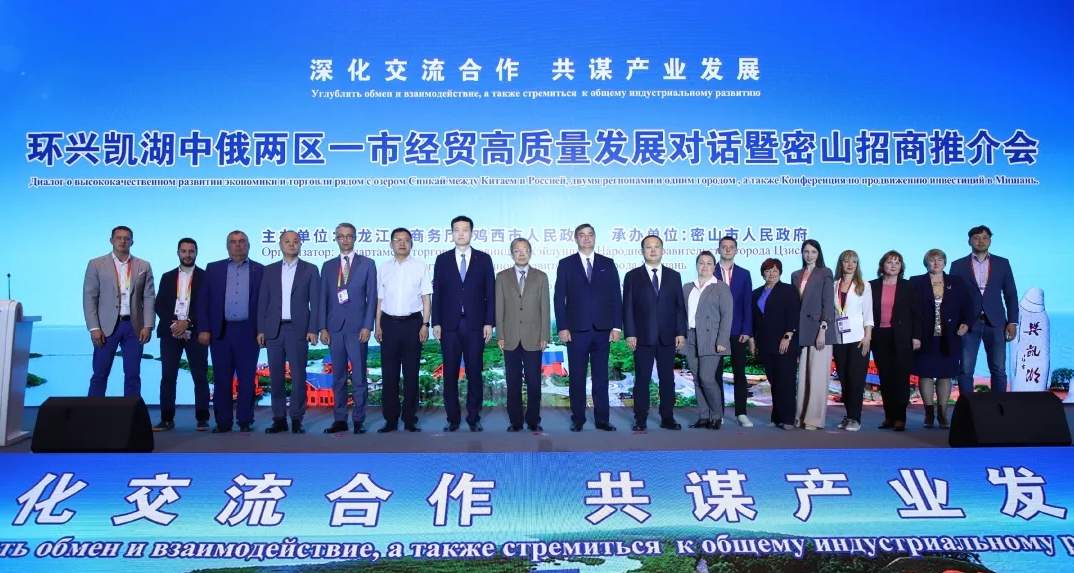 王立峰在會(huì)上與省商務(wù)廳二級(jí)巡視員姚綱,省工信廳二級(jí)巡視員王東純,雞西市政府副市長(zhǎng)陳霖,密山市委副書記、市長(zhǎng)王士強(qiáng),俄羅斯濱海邊疆區(qū)霍洛里區(qū)區(qū)長(zhǎng)古柏杜林,俄羅斯濱海邊疆區(qū)興凱區(qū)副區(qū)長(zhǎng)瓦西里耶夫按下共同推動(dòng)環(huán)興凱湖地區(qū)高質(zhì)量發(fā)展倡議發(fā)布儀式啟動(dòng)鍵。