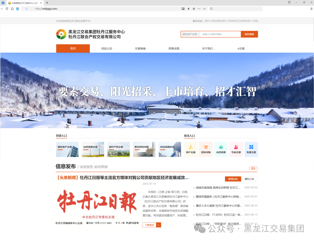 牡丹江聯(lián)合產(chǎn)權(quán)交易有限公司(交易集團牡丹江服務(wù)中心)官網(wǎng),牡丹江陽光交易平臺網(wǎng)站于近日正式上線。作為牡丹江市公共資源交易體系重要組成部分,該網(wǎng)站承載國有資產(chǎn)交易、自然資源交易、陽光招標采購等全要素交易展示功能,依托全流程陽光交易系統(tǒng),為牡丹江區(qū)域各類要素合規(guī)高效流轉(zhuǎn)提供技術(shù)服務(wù)支持。