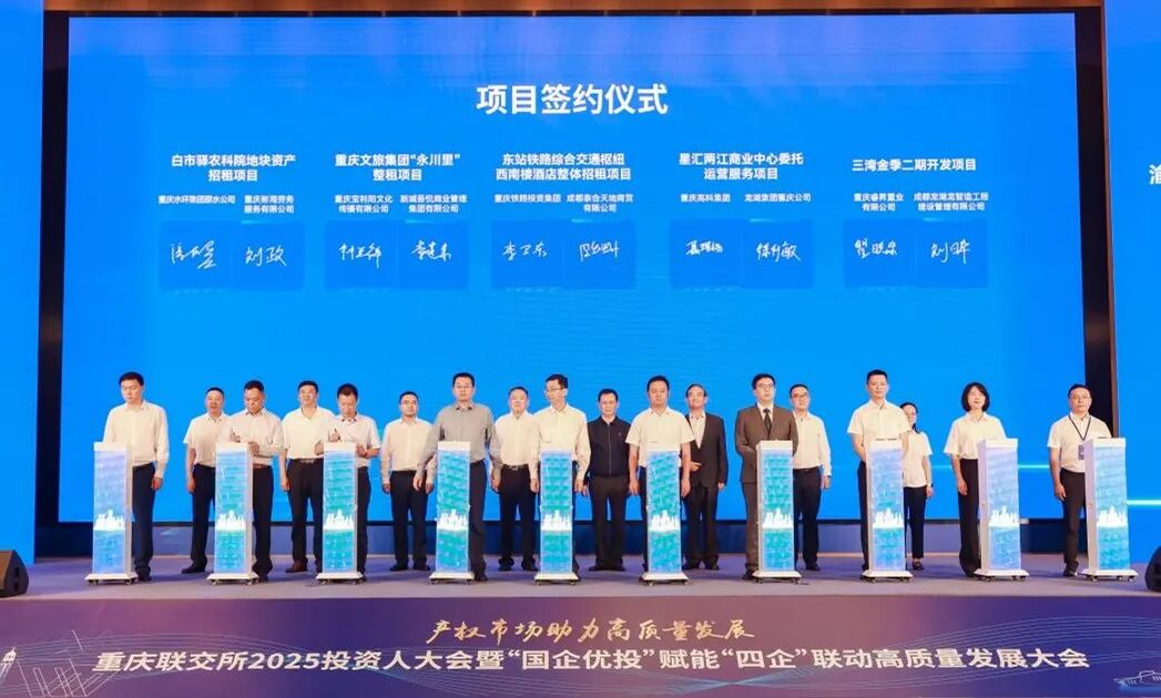 新聞中心 > 行業(yè)動態(tài)2025年9月24日,以“產(chǎn)權(quán)市場助力高質(zhì)量發(fā)展”為主題,由中國企業(yè)國有產(chǎn)權(quán)交易機構(gòu)協(xié)會(以下簡稱中國產(chǎn)權(quán)協(xié)會)、重慶市國資委聯(lián)合主辦,重慶聯(lián)合產(chǎn)權(quán)交易所集團(以下簡稱重慶聯(lián)交所)承辦的“重慶聯(lián)交所2025投資人大會暨‘國企優(yōu)投’賦能‘四企’聯(lián)動高質(zhì)量發(fā)展大會”在山城重慶隆重舉行。本次會議深度解讀投資趨勢,匯聚全國投資力量,搭建高效對接平臺,推動產(chǎn)權(quán)市場在優(yōu)化資源配置、促進各類所有制經(jīng)濟協(xié)同發(fā)展,縱深推進全國統(tǒng)一大市場建設(shè)中發(fā)揮更大作用。