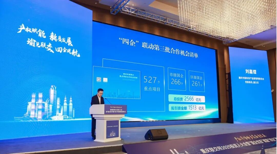 重慶市國資委黨委委員、副主任劉嘉熠現(xiàn)場發(fā)布了“四企”聯(lián)動2025年第三輪合作機會清單,涉及項目527個,總投資額超2500億元,擬引資超1500億元,涵蓋城市開發(fā)、產(chǎn)城融合等多個領(lǐng)域,為投資者提供了豐富的項目資源。