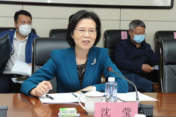 在交易集團業(yè)務大廳,沈瑩聽取了交易集團基本情況和各業(yè)務板塊介紹,觀看了企業(yè)文化墻展示,與一線員工親切交流,并主持召開調(diào)研座談會。