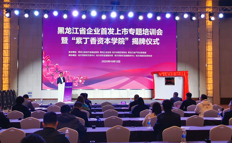 10月13日,由省地方金融監(jiān)管局、黑龍江證監(jiān)局、哈爾濱新區(qū)管委會、省產(chǎn)權(quán)交易集團聯(lián)合舉辦的黑龍江省企業(yè)首發(fā)上市專題培訓會暨“紫丁香資本學院”揭牌儀式在哈舉行。