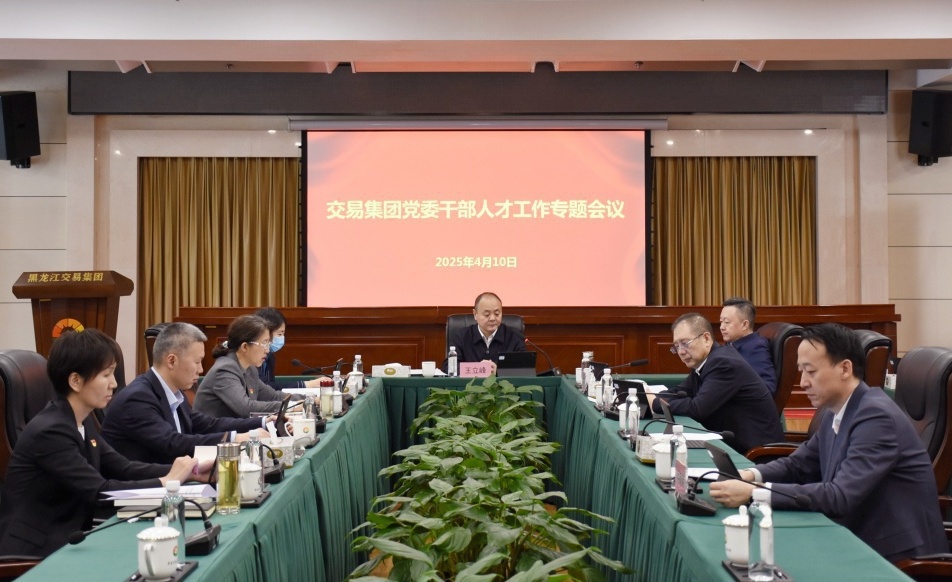 新聞中心 > 集團(tuán)要聞4月10日,交易集團(tuán)黨委召開干部人才工作專題會議,深入學(xué)習(xí)習(xí)近平總書記對年輕干部作出的重要指示精神,《習(xí)近平總書記關(guān)于黨的建設(shè)的重要思想概論》中第七章“堅持造就忠誠干凈擔(dān)當(dāng)?shù)母咚刭|(zhì)干部隊伍”,全國和全省組織部長會議精神,以及《黑龍江省國資委干部儲備培養(yǎng)和使用工作規(guī)劃(2022-2026 年)》等內(nèi)容,對集團(tuán)干部人才工作進(jìn)行安排部署。集團(tuán)黨委書記、董事長王立峰主持會議并講話,集團(tuán)黨委班子成員出席會議,集團(tuán)副總經(jīng)理、董事長助理、總經(jīng)理助理,集團(tuán)各部門、各權(quán)屬企業(yè)負(fù)責(zé)同志列席會議。
