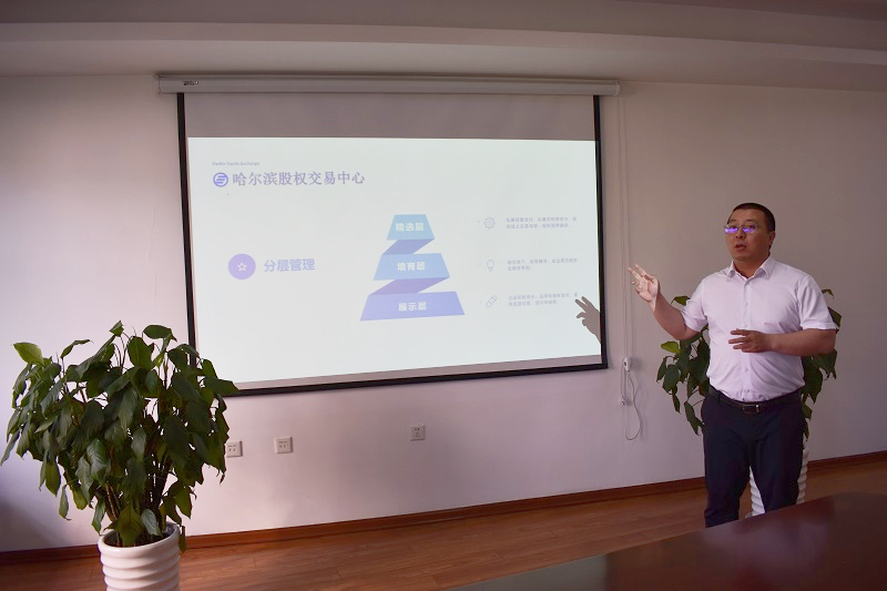 新聞中心 > 子公司動態(tài)為推動“能力作風(fēng)建設(shè)年”活動走深走實(shí),進(jìn)一步解放思想、開闊思維、聚集資源,切實(shí)提升綜合金融服務(wù)能力,更好地發(fā)揮區(qū)域性股權(quán)市場功能,服務(wù)好我省中小企業(yè)發(fā)展,6月8日,哈爾濱股權(quán)交易中心(以下簡稱哈股交)與工商銀行黑龍江分行網(wǎng)絡(luò)金融部圍繞強(qiáng)化線上金融服務(wù)、助力中小企業(yè)發(fā)展開展業(yè)務(wù)交流活動。工商銀行黑龍江分行網(wǎng)絡(luò)金融部副總經(jīng)理蔣本剛、工商銀行哈爾濱分行網(wǎng)絡(luò)金融部總經(jīng)理安大軍、工商銀行哈爾濱自貿(mào)區(qū)分行副行長劉洋,哈股交董事長王全武,聯(lián)交所金融服務(wù)部負(fù)責(zé)人,以及哈股交各部門負(fù)責(zé)人參加座談交流會。