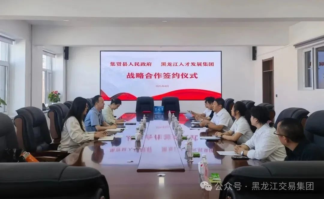 新聞中心 > 子公司動(dòng)態(tài)8月14日,黑龍江人才發(fā)展集團(tuán)與集賢縣人民政府舉行戰(zhàn)略合作簽約儀式,雙方就人才引進(jìn)、培養(yǎng)、人力資源服務(wù)及管理咨詢等人才工作全領(lǐng)域達(dá)成合作意向,政企攜手為集賢縣高質(zhì)量振興發(fā)展探索人才支撐新路徑。黑龍江人才集團(tuán)董事長牛順榮、集賢縣委副書記鄭超出席簽約儀式,黑龍江人才集團(tuán)副總經(jīng)理邢筱菲、集賢縣委組織部四級(jí)調(diào)研員邢繼峰、集賢縣人社局局長、黨組書記趙俊鵬及雙方有關(guān)負(fù)責(zé)同志參加座談交流。